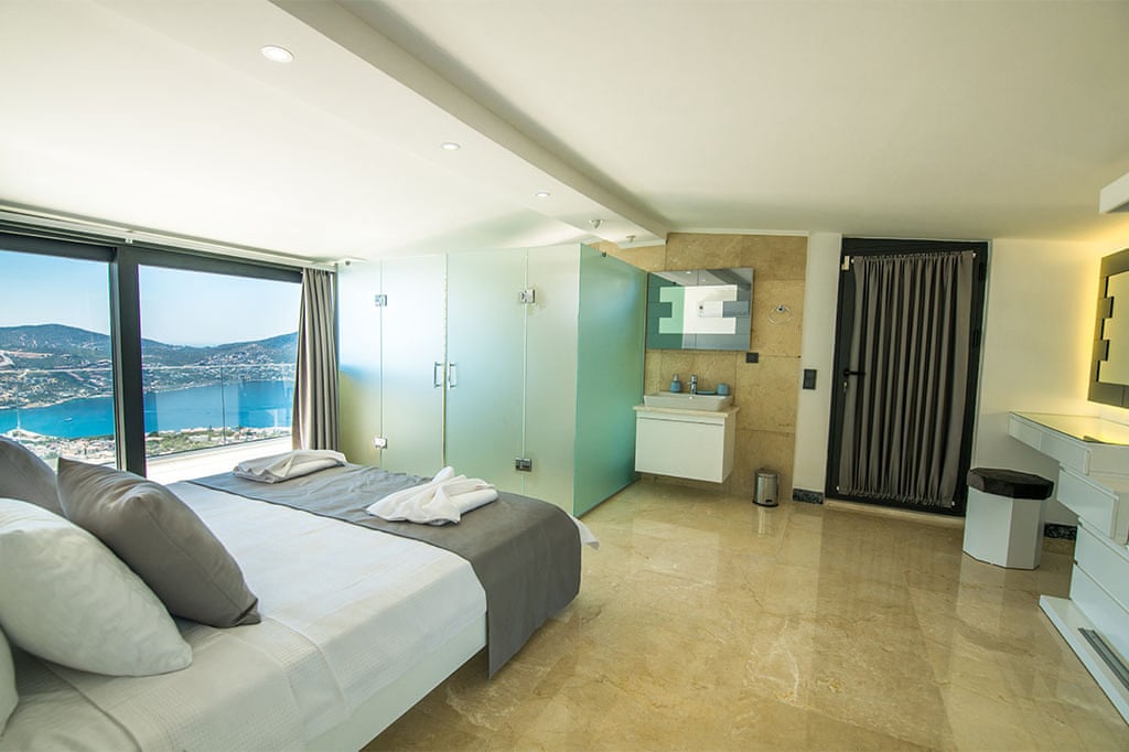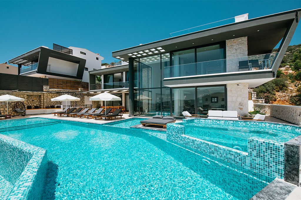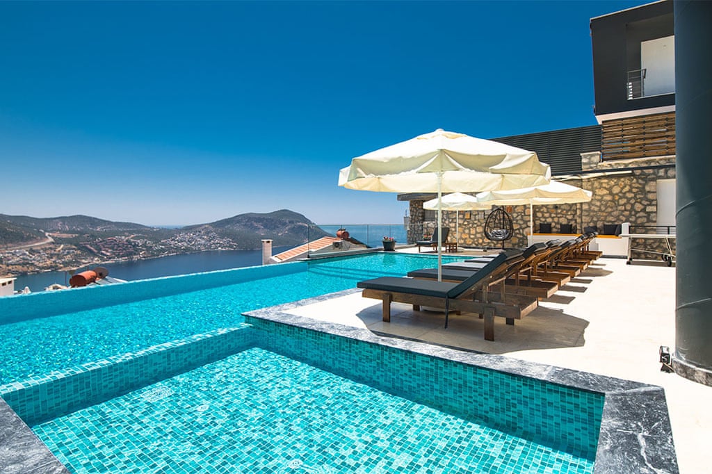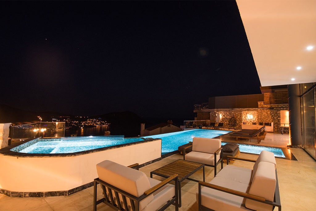 This villa located in Kalkan features 6 bedrooms and an outdoor pool, making it an ideal choice for large families.