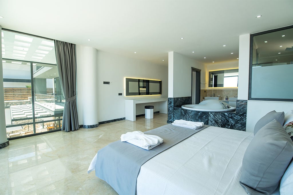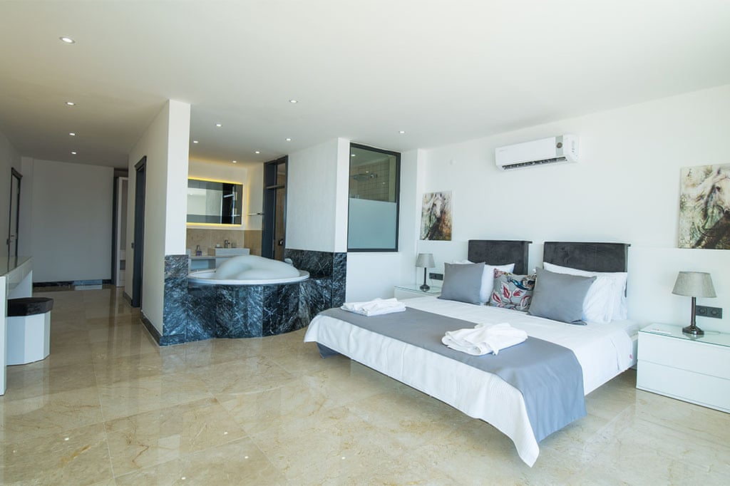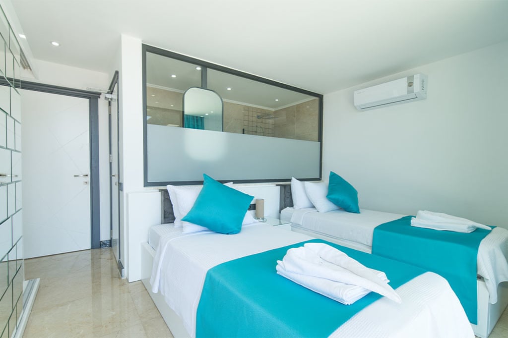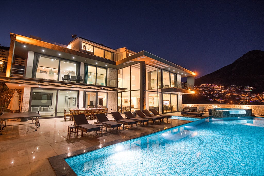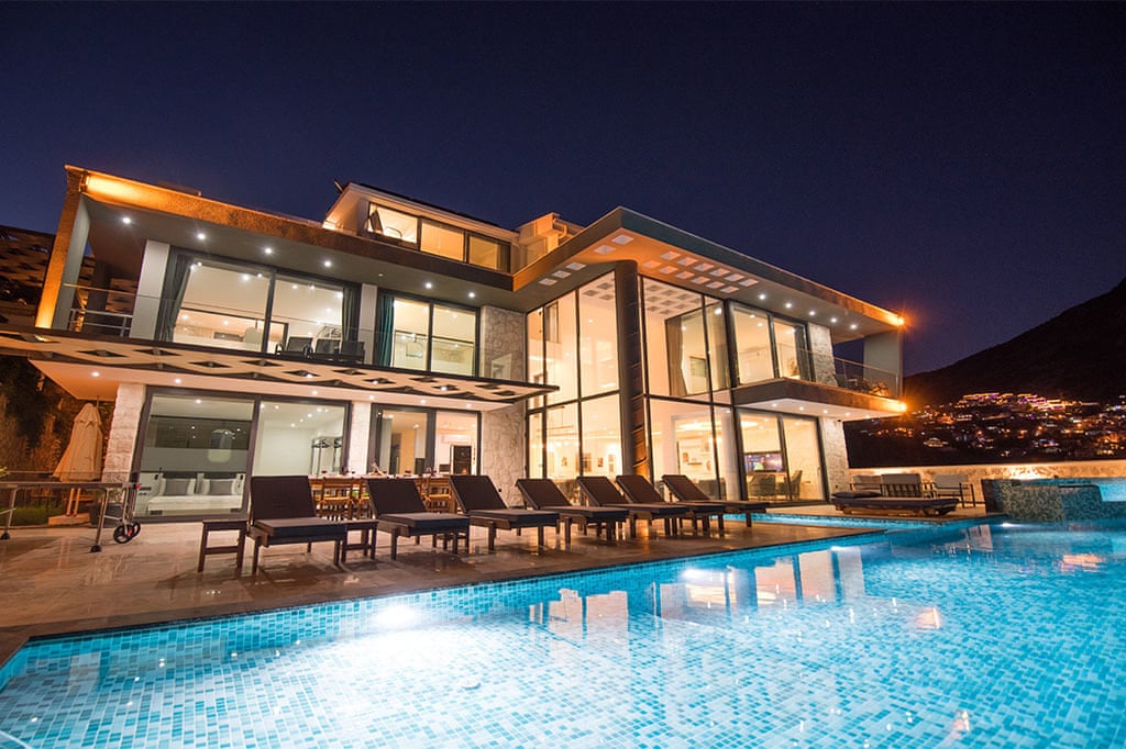 This villa located in Kalkan features 6 bedrooms and an outdoor pool, making it an ideal choice for large families.