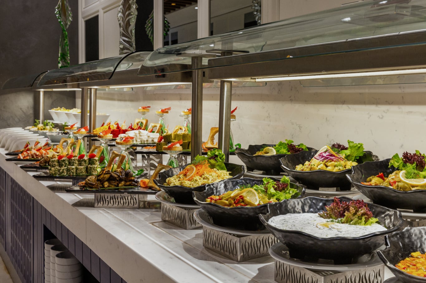 Buffet meals, snacks, and certain beverages are included.